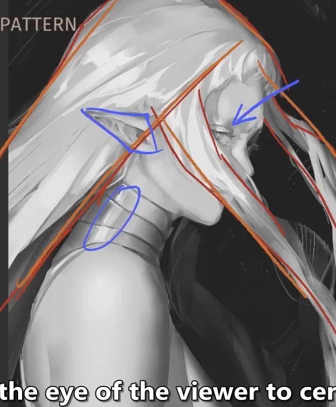 Connecting lines or blocking creates shapes. Shapes have patterns or rhythms. Smaller shapes can insert themselves to disrupt the rhythm as details for the composition. When analyzing references, start using a hierarchy of shapes. (Smaller as there are more details)