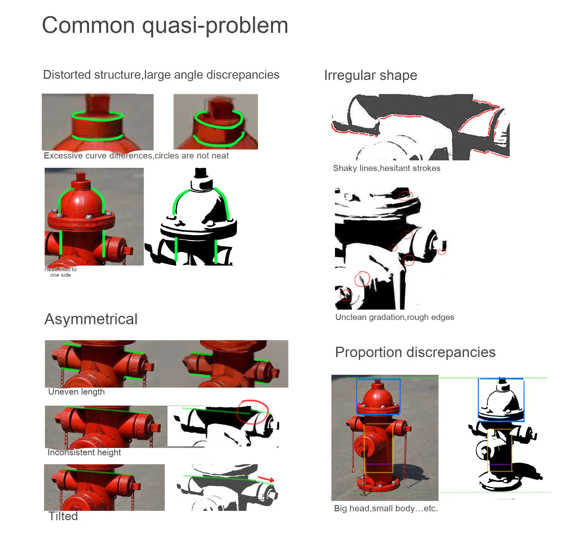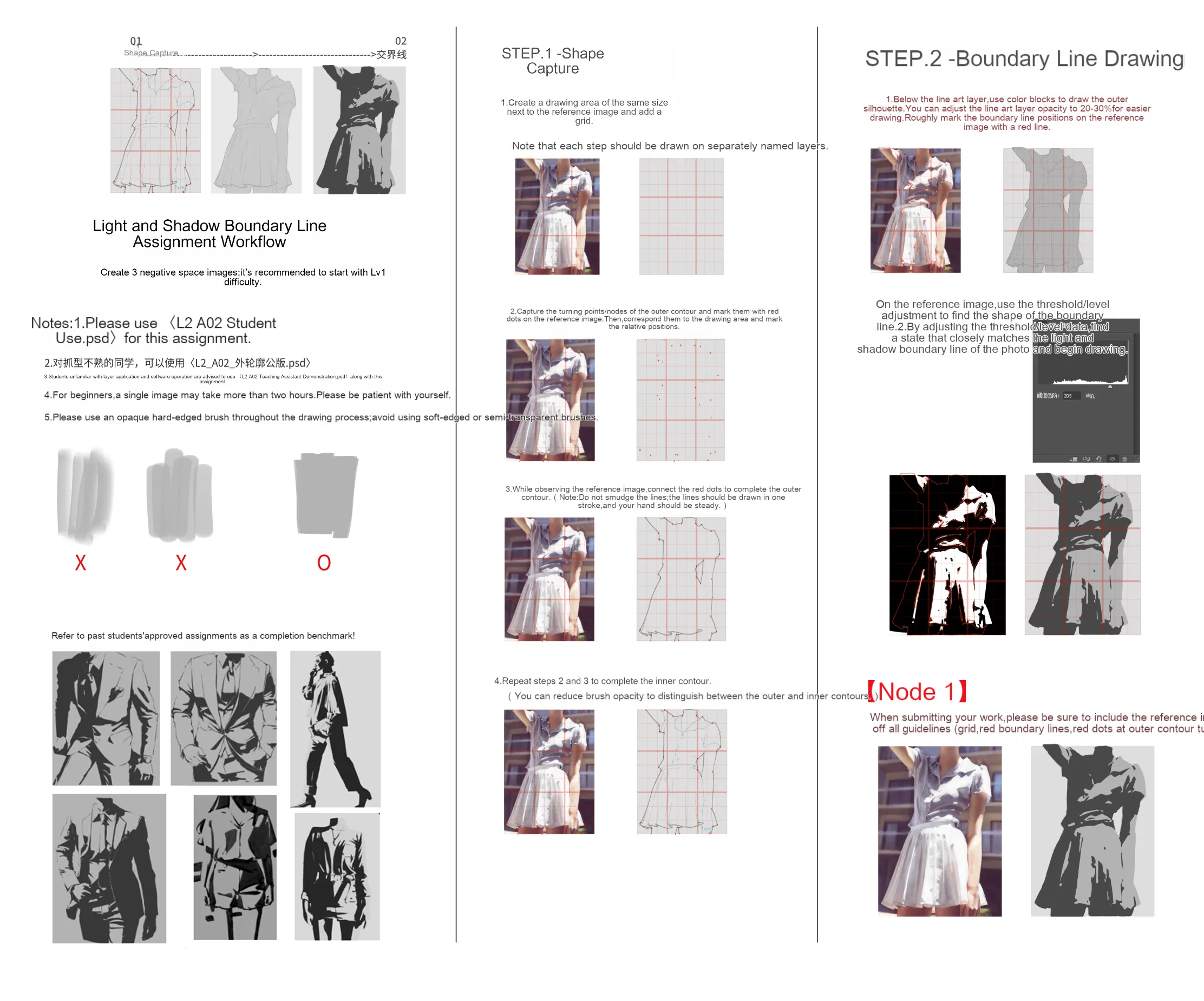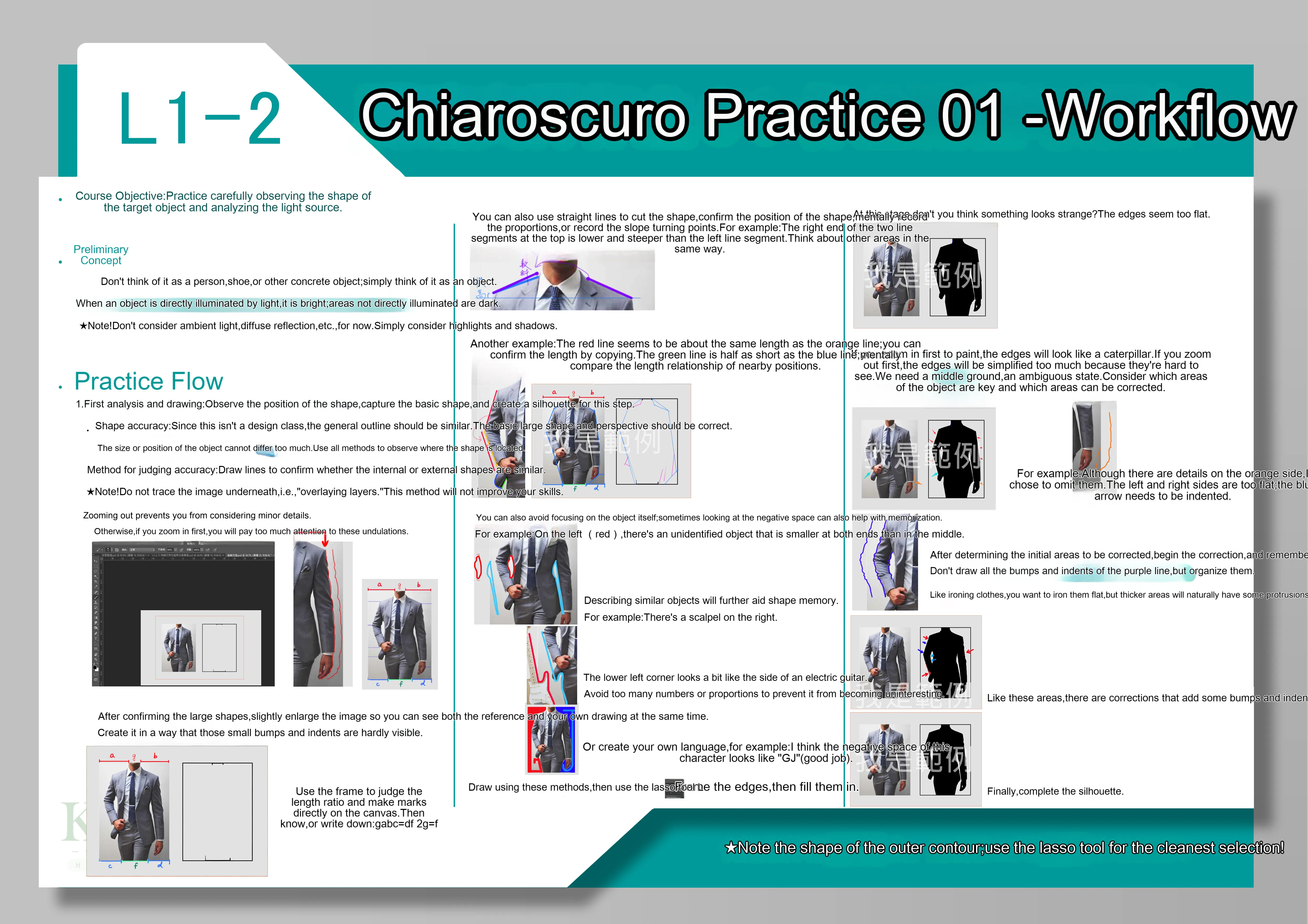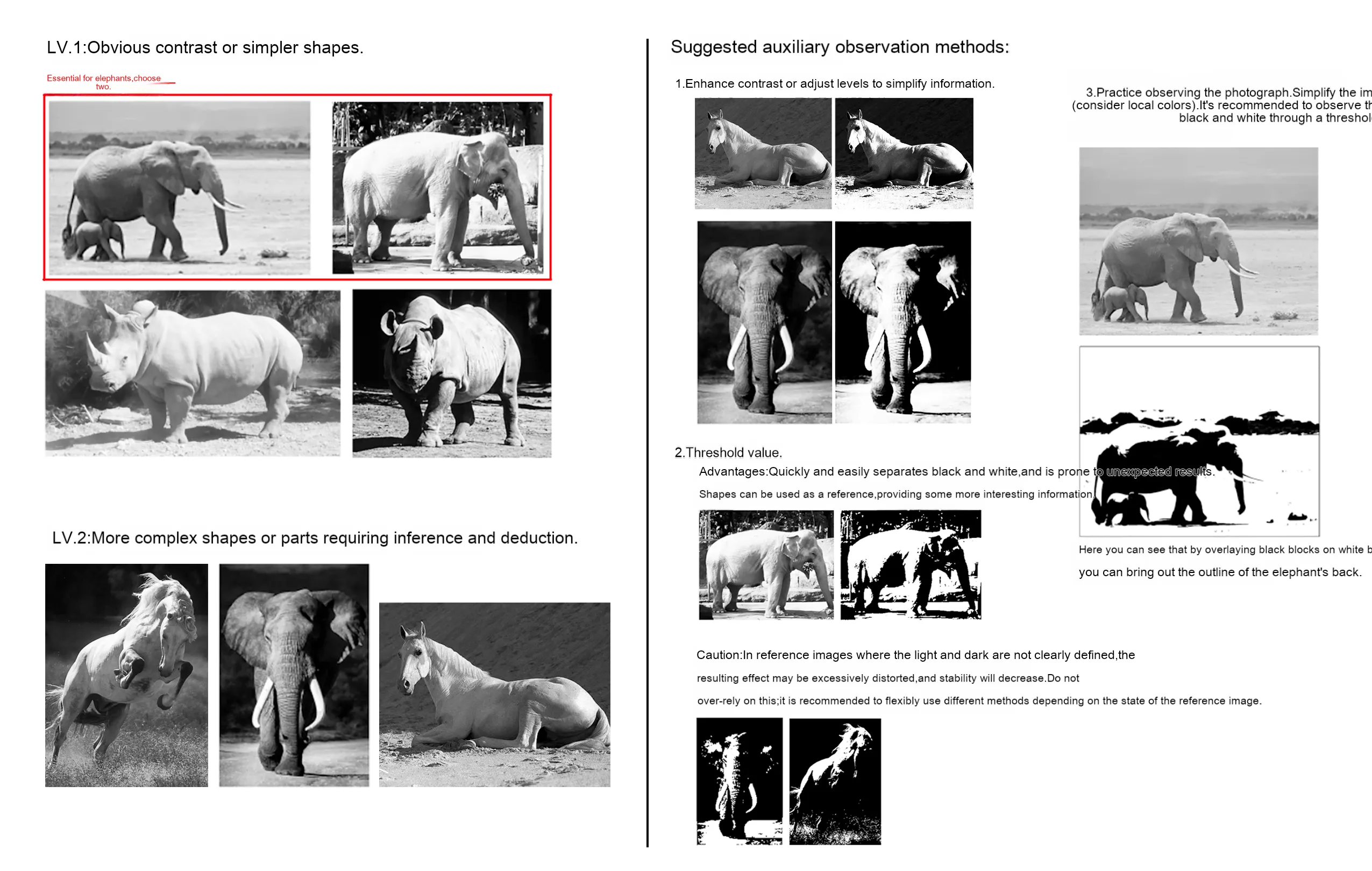 Note-taking the reference to clarify shapes is fair game. Using measuring techniques such as grids is allowed and recommended. Use the threshold or contrast filters to suggest potential shapes, but don’t over-rely. Refer to the knowledge supplement slides for more of these techniques.
