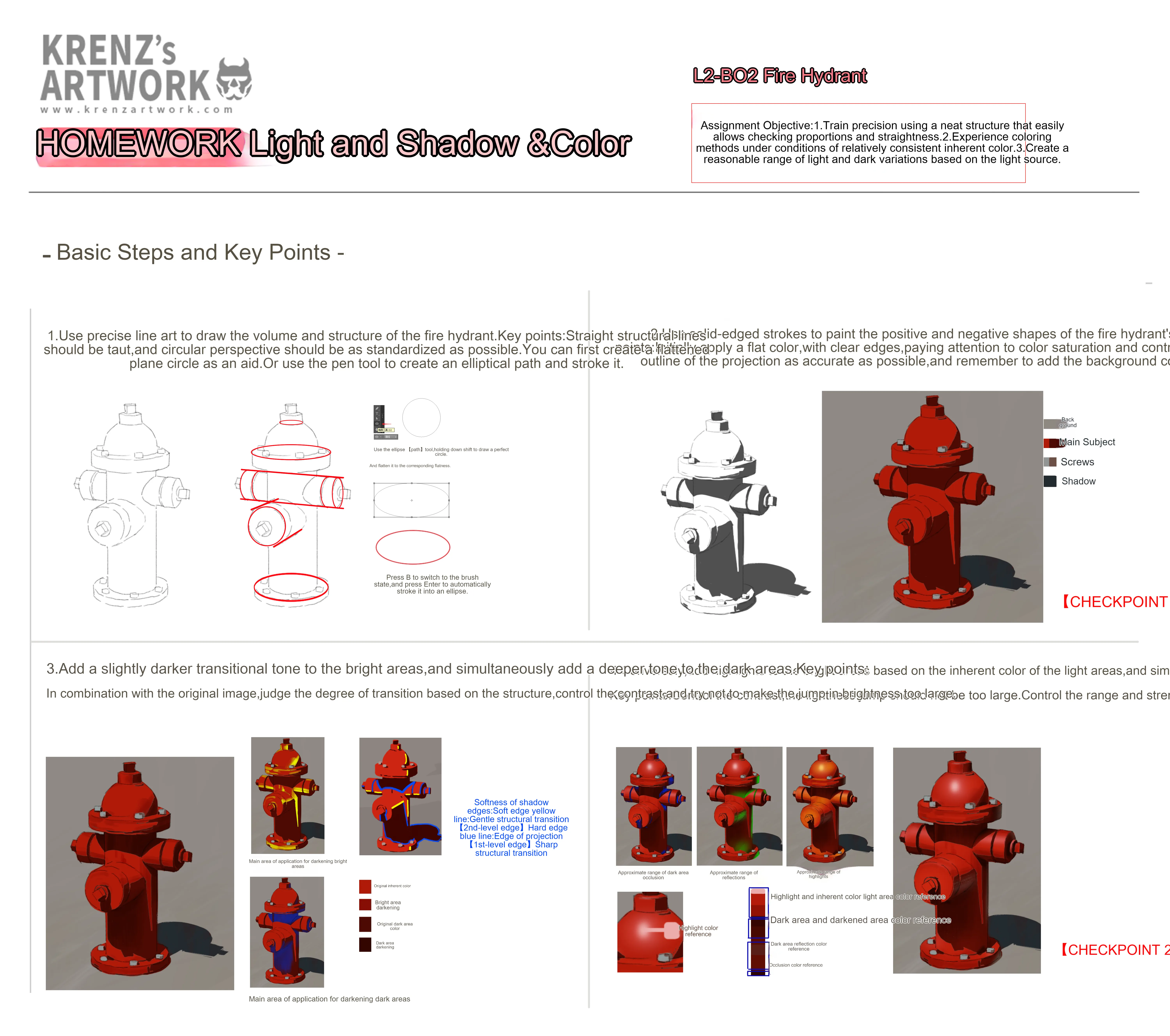 Perform various 2-value studies with varying complex shapes and subjects. Checkpoints B are advanced optional assignments.