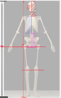 - Use thirds to determine approximate ribcage, pelvis, and neck positions.