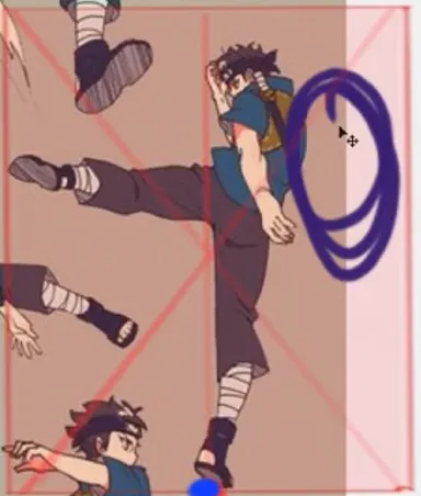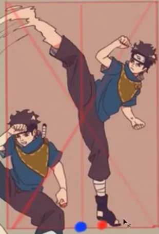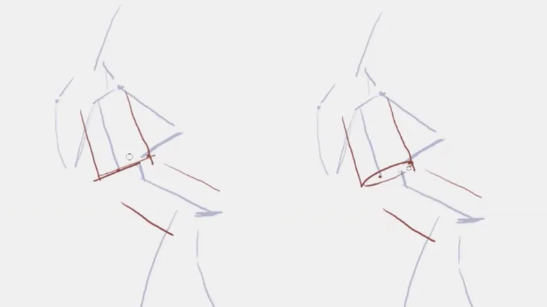 The top length can be copied over for the bottom knowing they share the same perspective. However, the arms to the right are affected by perspective, and don’t share the ribcage length one-to-one.