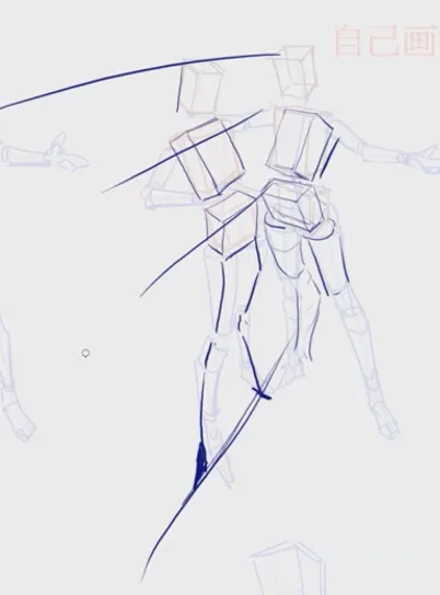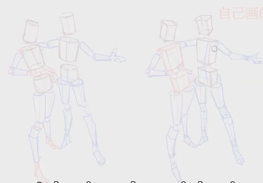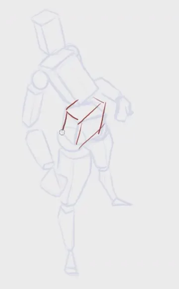 Quickly summarize a torso in a single stroke. Key shapes are “K” and “C.”