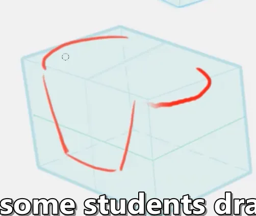 A square + triangle that turns inward after 3/4. The triangle on the opposite side is not drawn on three-quarter view.