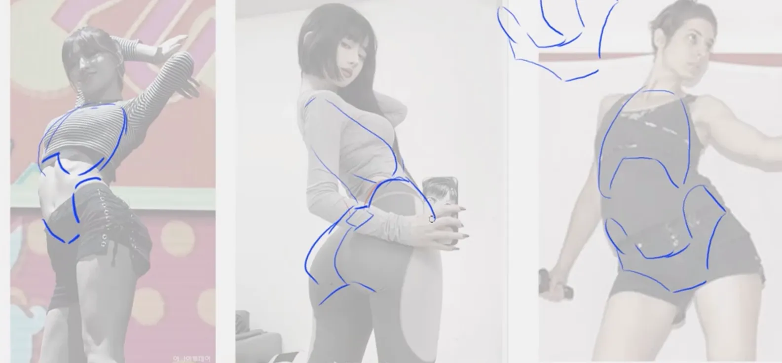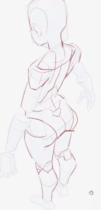 The gap between ribcage and pelvis is less apparent if the torso is twisted towards that side.